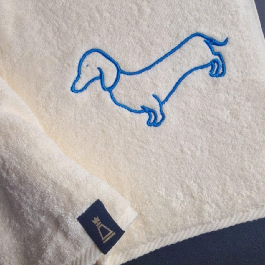 Wzory, które sami haftujemy i projektujemy na naszych ręcznikach, charakteryzują się trwałością i estetyką. Ręcznik nadaje się do obustronnego stosowania. Trzeba mieć świadomość, że haft „na odwrocie” delikatnie różni się wizualnie od haftu „na przodzie”. Haftowany wzór na ręcznikach Regal Cotton tworzymy przy użyciu najwyższej klasy hafciarki komputerowej firmy Haftex.