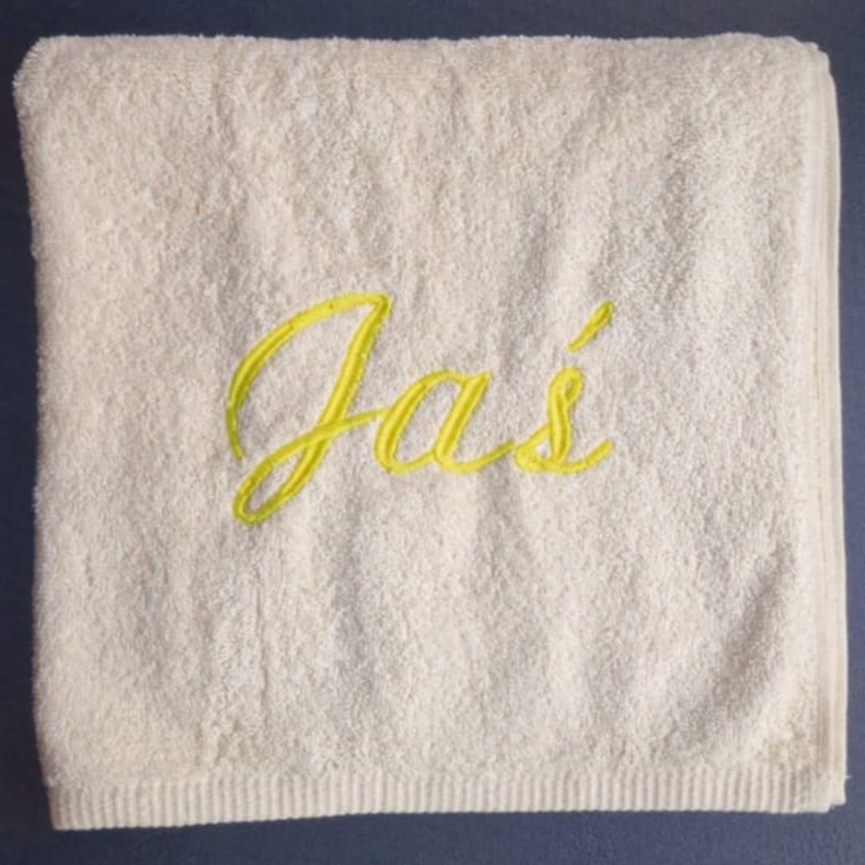 Ręcznik z grubej BAWEŁNY 100% FROTTE z haftowanym przez nas komputerowo napisem.